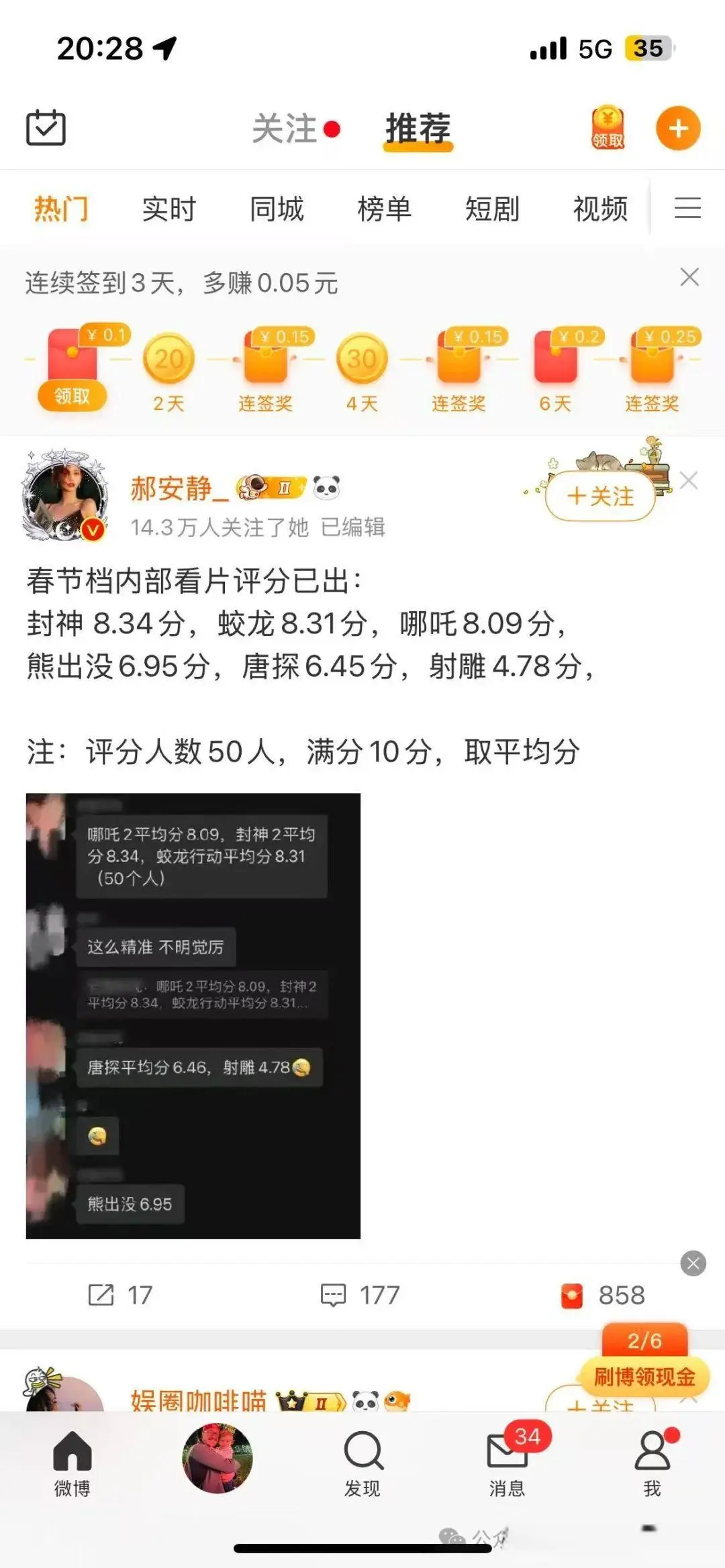 然而,今年春节档的内部看片评分却意外泄露,激起了影迷与业内的广泛讨论。以下是据爆料流出的看片评分数据:《封神第二部:战火西岐》:8.34分《蛟龙行动》:8.31分《哪吒之魔童闹海》:8.09分《熊出没·重启未来》:6.95分《唐探1900》:6.45分《射雕英雄传:侠之大者》:4.78分